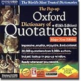 Platform:Windows 95/98/Me/NT/2000/XPPublisher:OXFORD UNIVERSITY PRESSPackaging:jewel caseThe Oxford Dictionary of Quotations is as impressive erudite enjoyable and educational a tome as you might expect from Oxford. It's the sort of undertaking the press does very well. The first such dictionary as compiled by Oxford was published in 1953 and it's been tweaking modifying and updating it ever since. This new edition the fifth offers well over 20000 quotations from more than 3000 authors. Responding to correspondence from their readers Oxford has restored some material from past editions such as the proverbs and nursery-rhymes section. There's a much more inclusive attention to sacred texts of world religions and 2000 quotations are brand new. Search through all the quotes with this CD.System Requirements:Windows 95/98/ME/NT/2K/XP